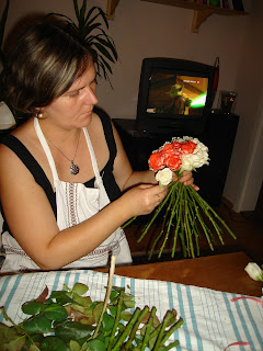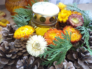 Ez alkalommal koszorúkészítésre adtam a fejem. Persze látni egy-egy virágosnál igényesebb darabot, de a nagy többsége kapkodásban összedobott, ragasztó-szálkás, és tömegcikk, műanyaggal...és ráadásul drága. Szóval nem az, amit én a Drága nagyszüleim és Dédmamám sírjára szívesen vinnék...semmi esetre sem. Így meg amíg kötögetek, visszaemlékezek rájuk, kicsit mintha egymás mellett ülnénk a konyhaasztal mellett...